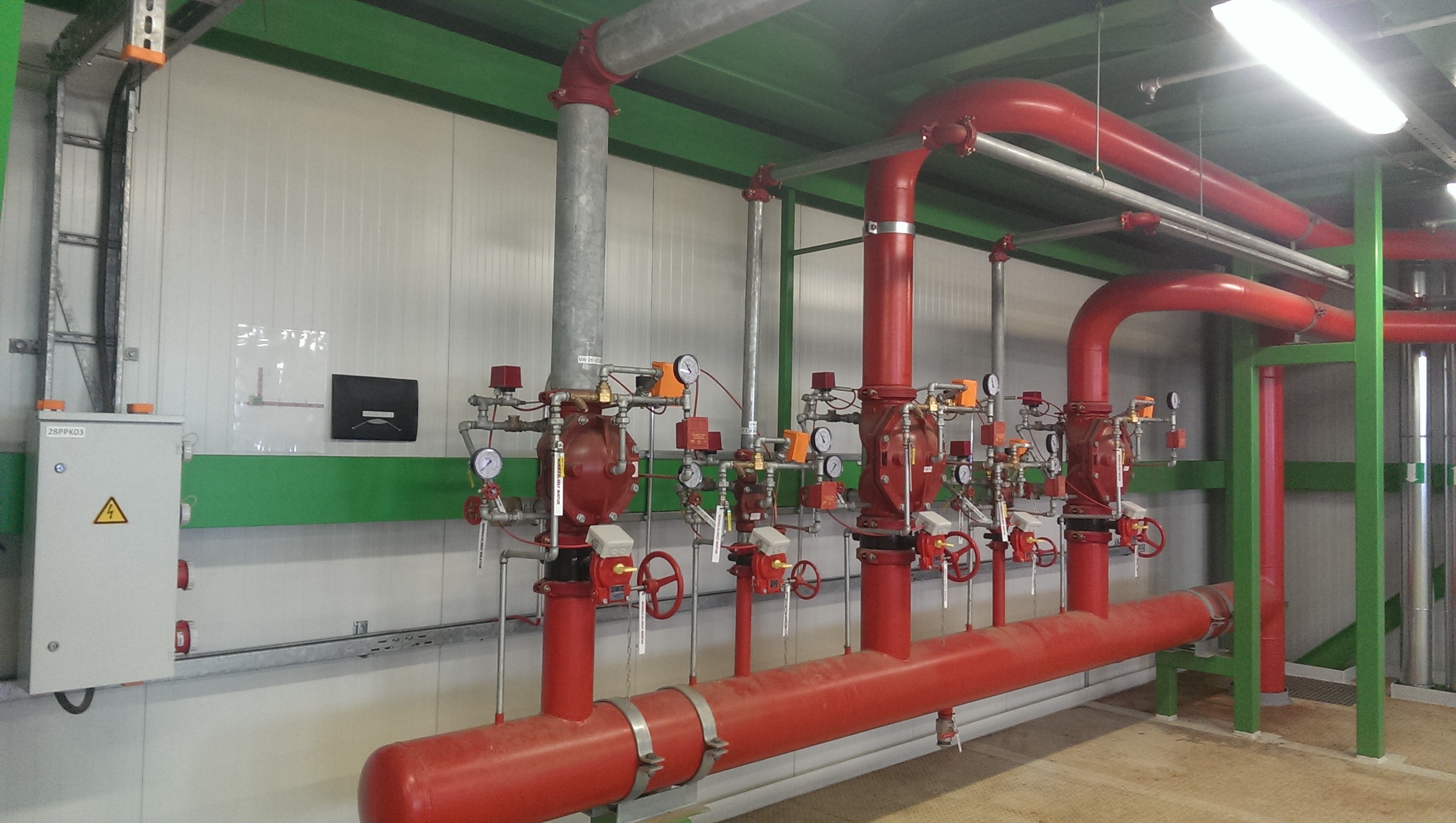 Rajati põlevkivi ja biokütuse etteandesüsteemide sprinklersüsteem (deluge). Torustike kogumaht 7km.