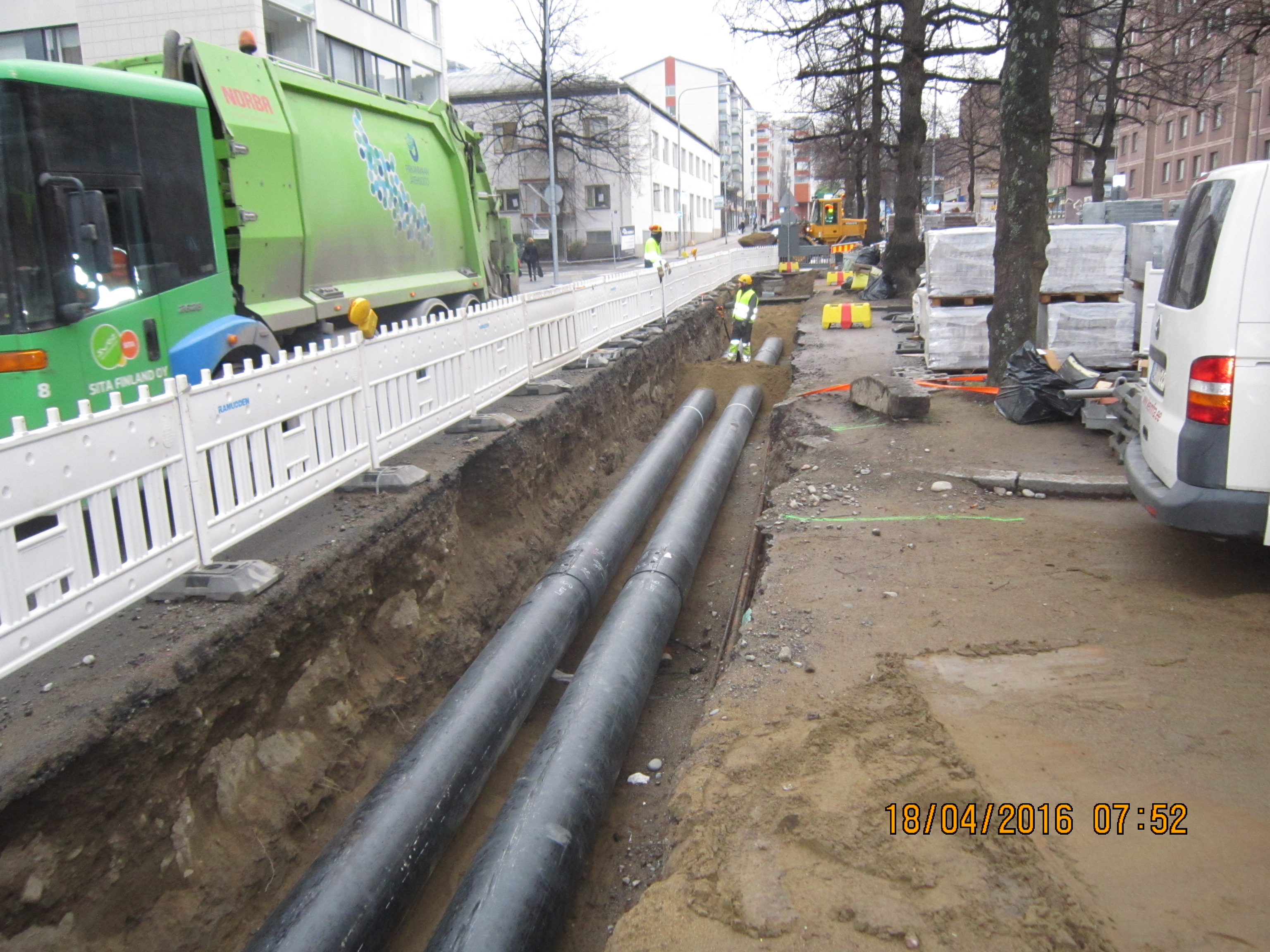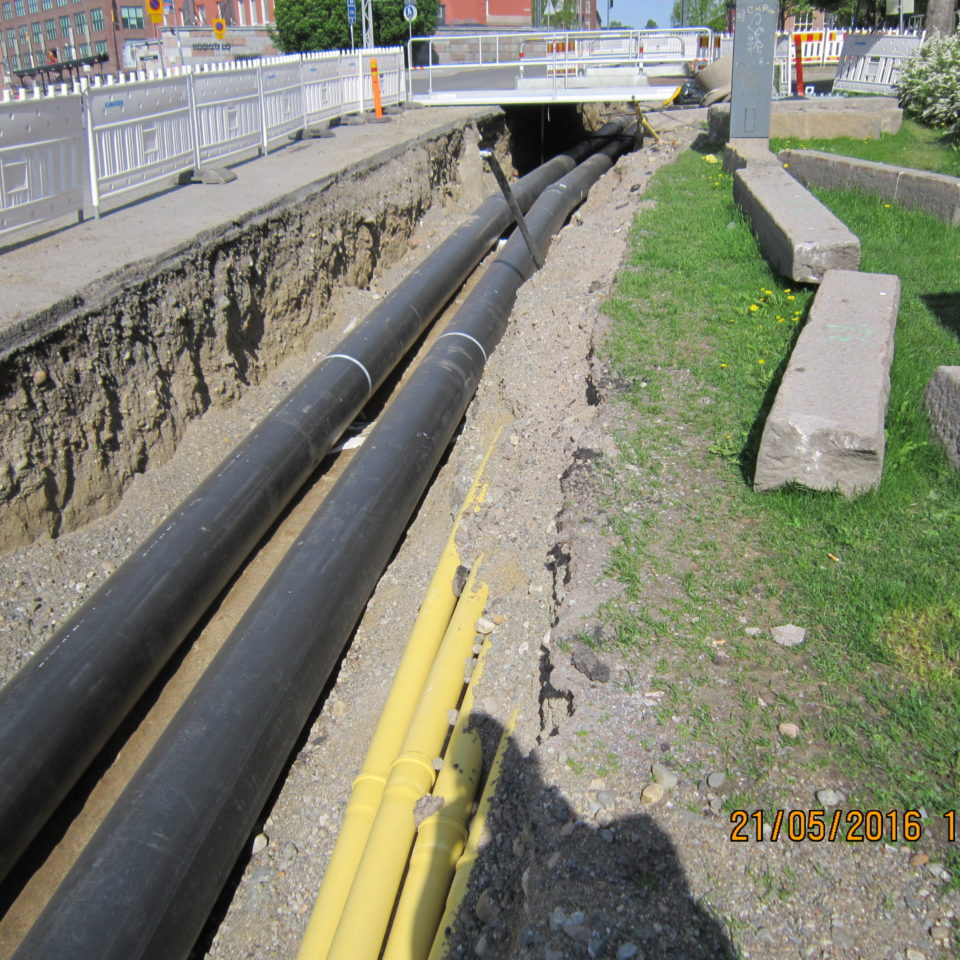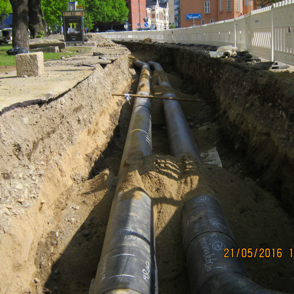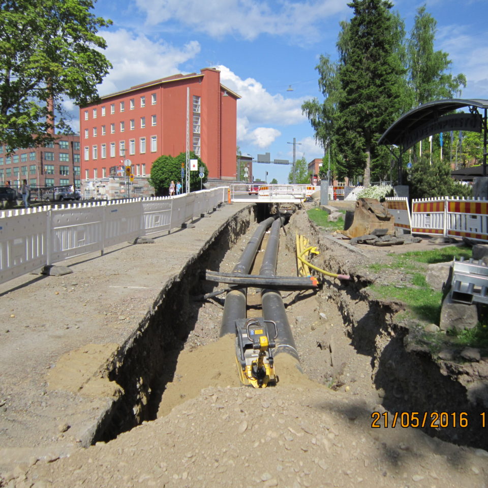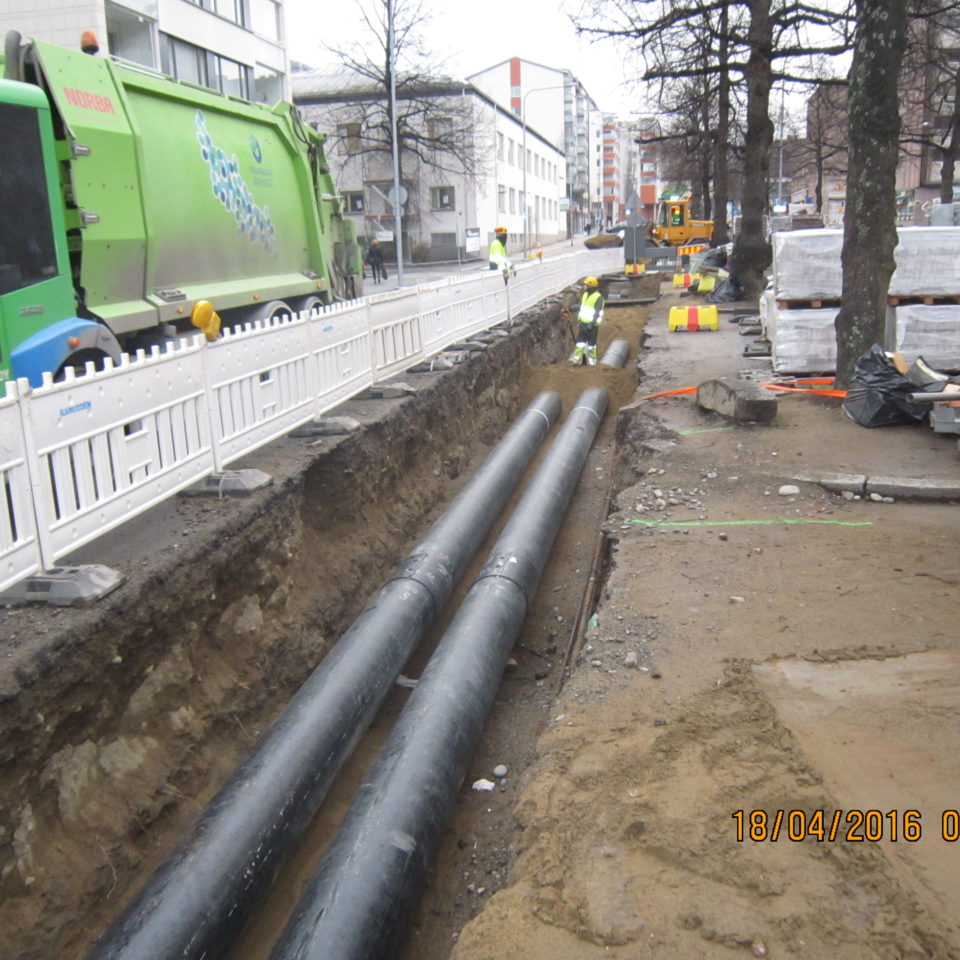 Tampere kesklinna Rongankatu – Kelloportinkatu rajatud DN400 maa-alune kaugjahutuse torustik, kogu pikkusega 450 trassimeetrit.